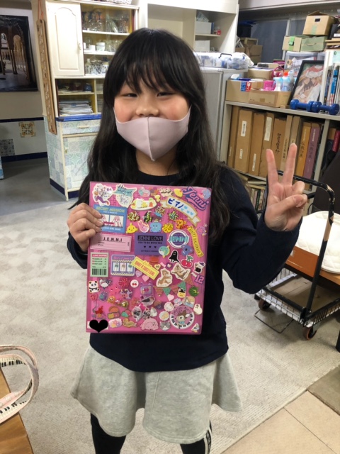 普通は楽譜に貼ってもらうのですが、Wちゃんはファイルに貼って一面コンプリートするのを目標にしていました。