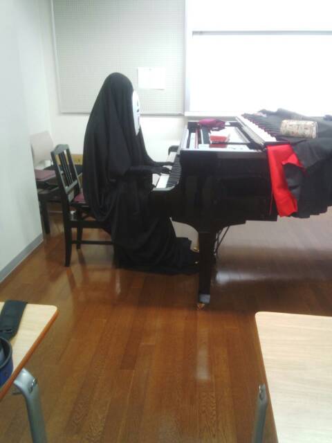 今日の写真は、発表会の会場のホールがある音楽高校(私の母校です)に6年前、突然現れた「ピアノを弾くカオナシ」です。