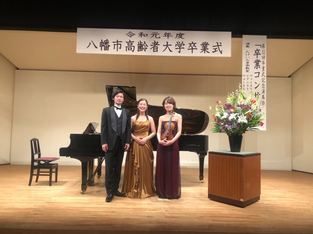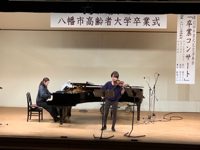 昨日は八幡市生涯学習センターさまよりご依頼いただき、当教室ピアノの南部とヴァイオリンの辰巳が高校時代の同級生 テノール奥本さんと一緒に演奏家派遣でお伺いさせていただきました🎶