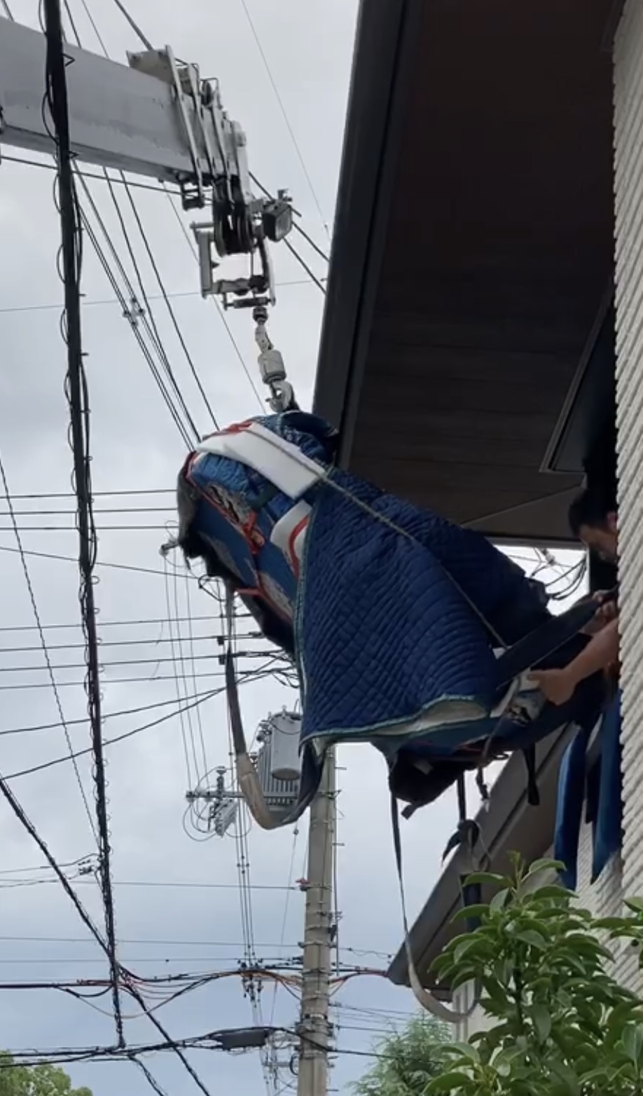 それに伴いピアノも移動したのですが、戸建て2階への搬入はなかなか大掛かりなもので…軒にクレーンが当たらないかヒヤヒヤしながら祈るような気持ちで見ていましたが、無事入ってホッとしました☺️