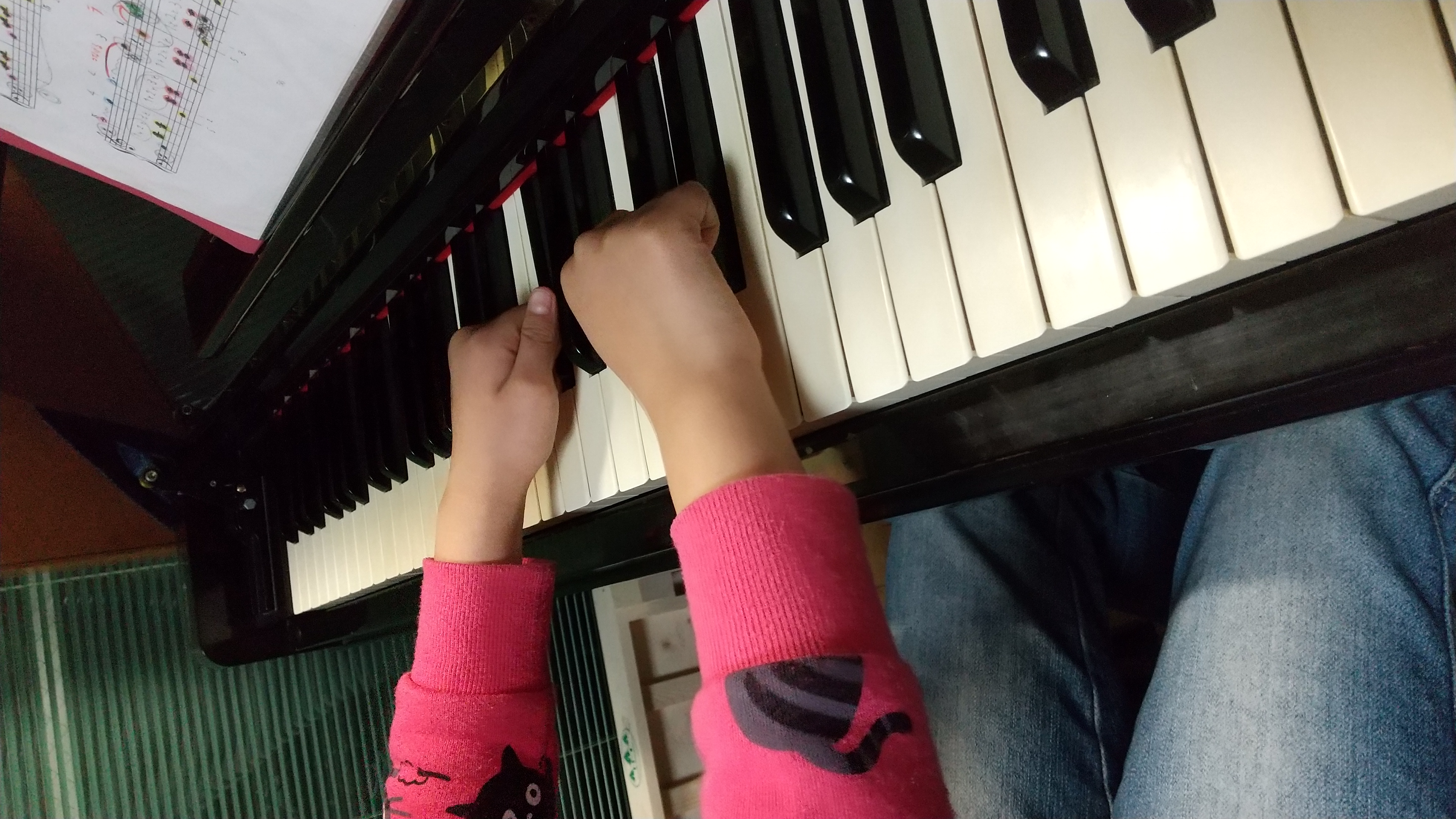 レッスン終わり、グー✊にしたまま「ねこふんじゃった」演奏中のMちゃんです。