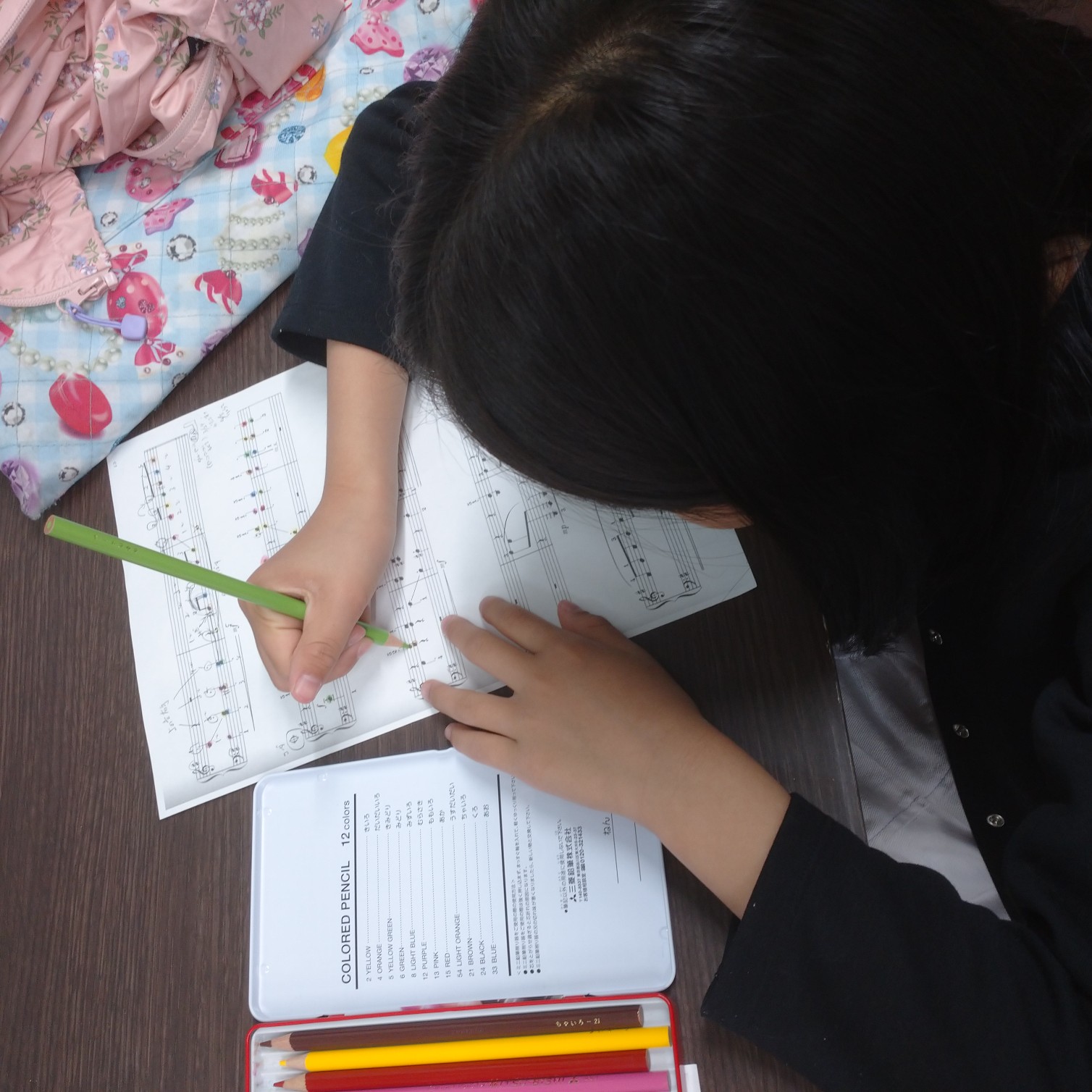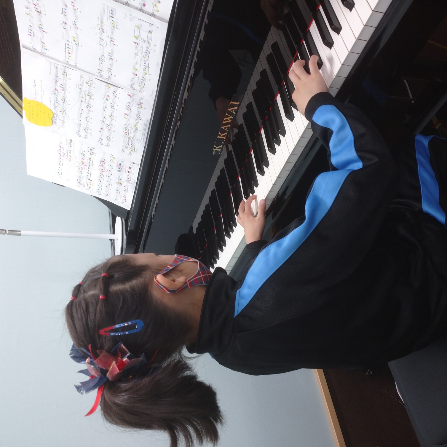 昨年、初めての発表会曲は私がたくさんヒントをあげないと音符に色塗りできなかったのが
