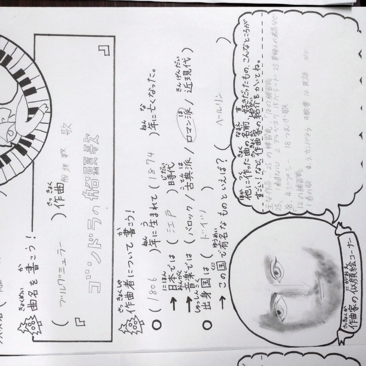 その中でも、ブルグミュラーが作曲した曲について書いてきてくれた生徒さんたちの物が今日の写真です🎹