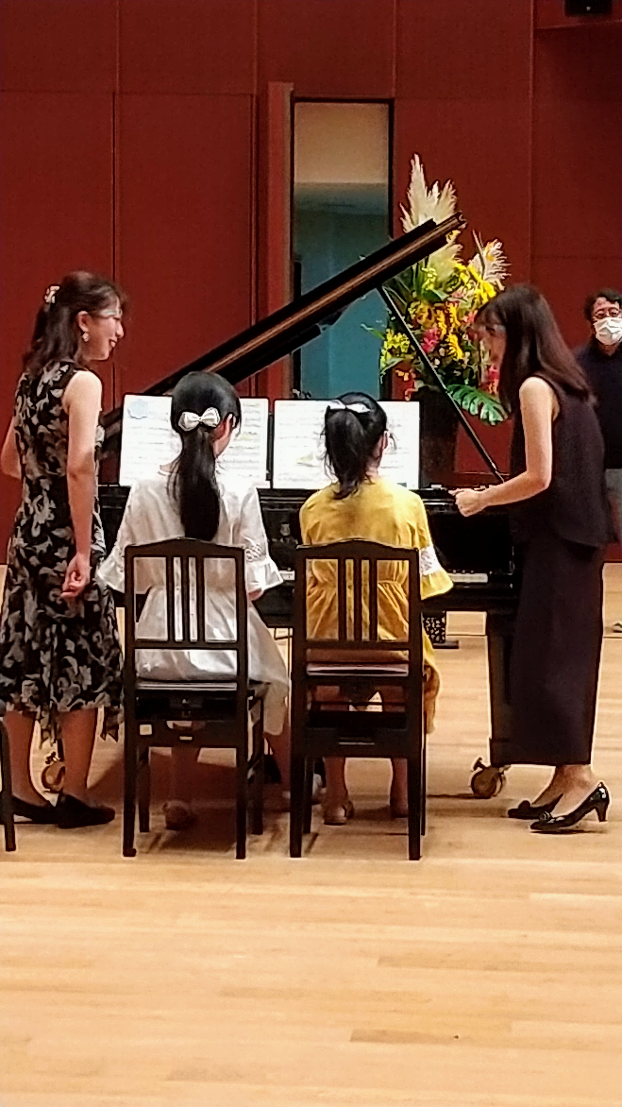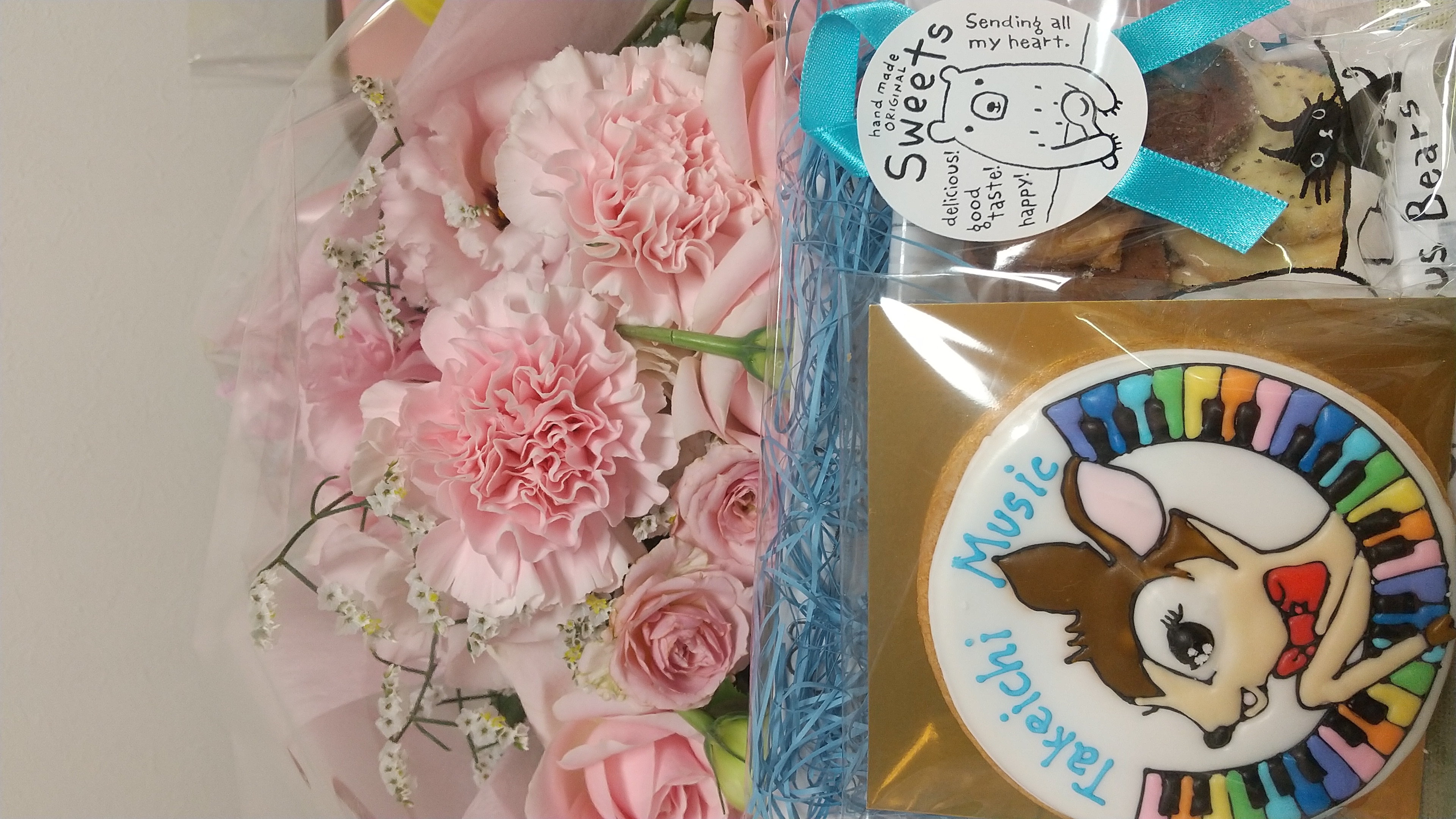 少しだけ撮ったリハーサル写真と、発表会の記念品、それから生徒さんからいただいたお花の写真を添付します。