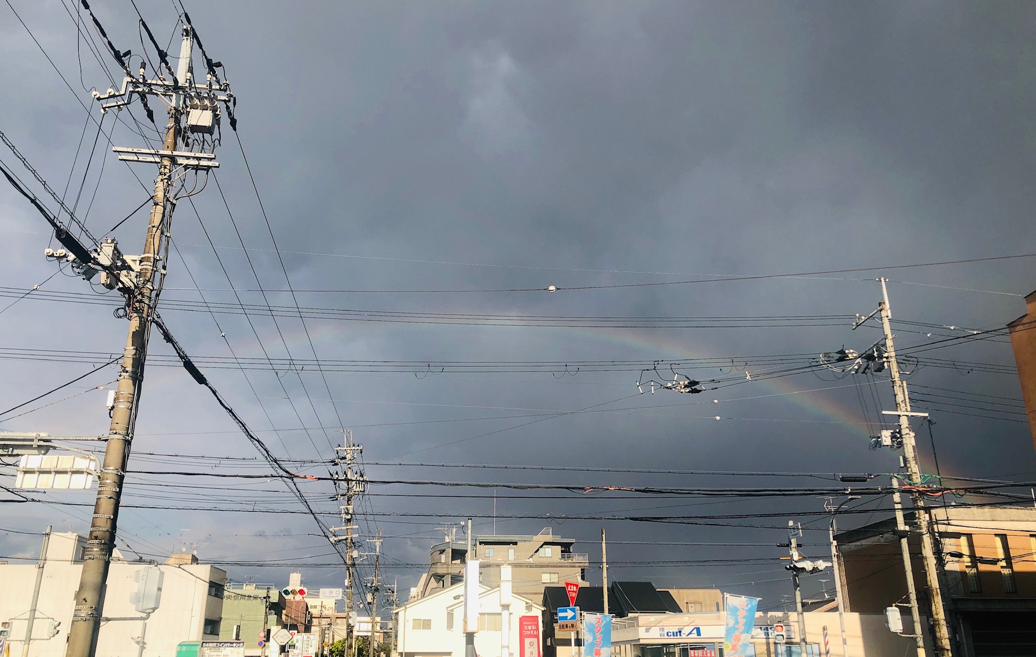 今日は雨が降っていましたが、夕方晴れた時に散歩に行くと空に虹が掛かっていました🌈